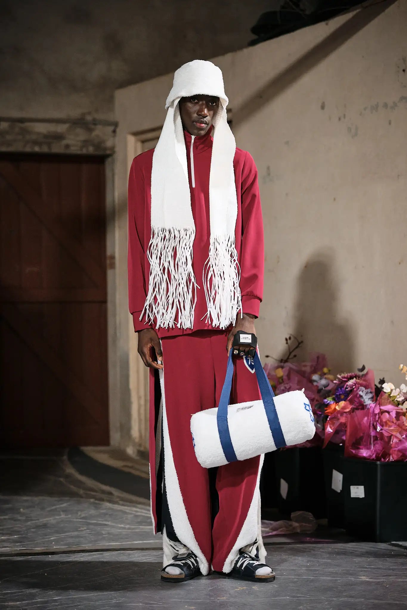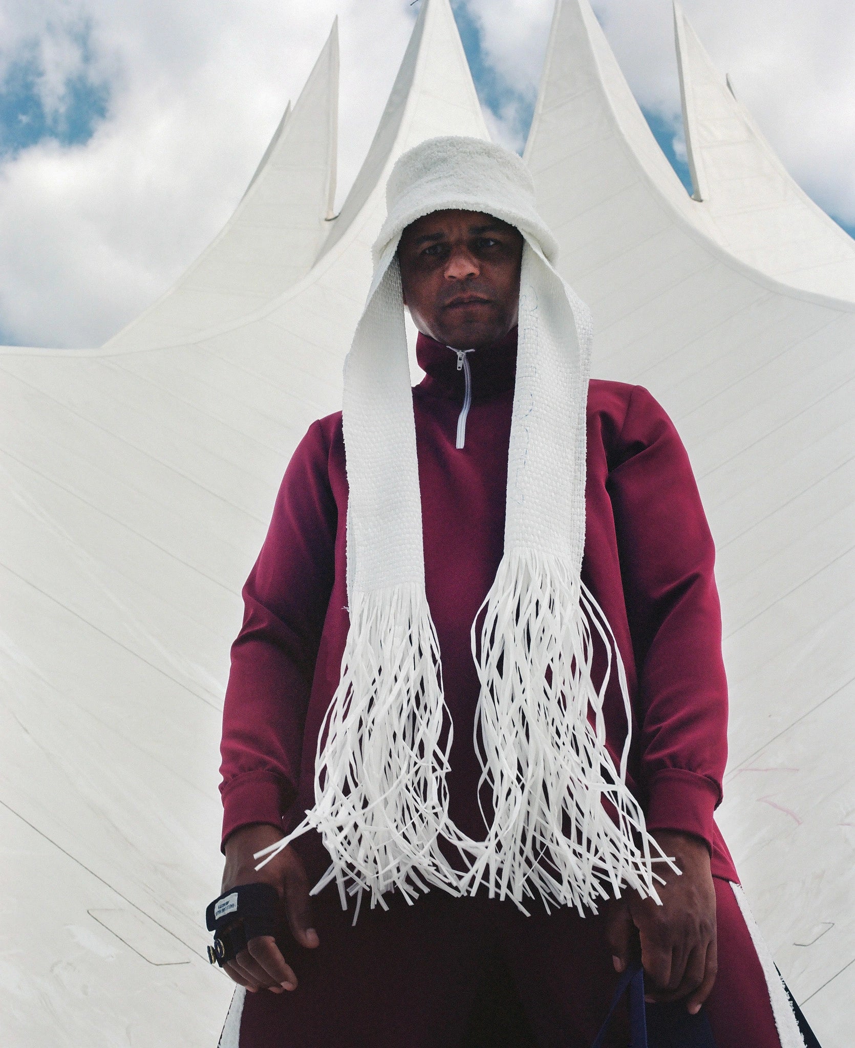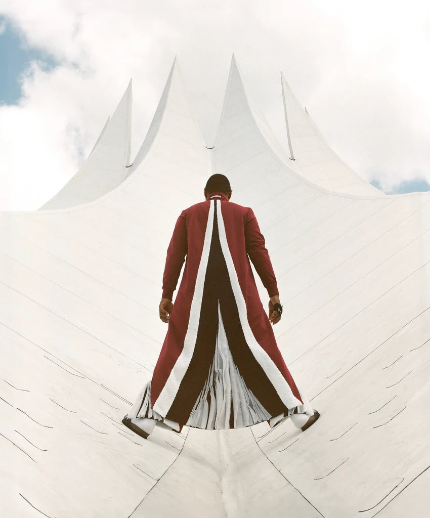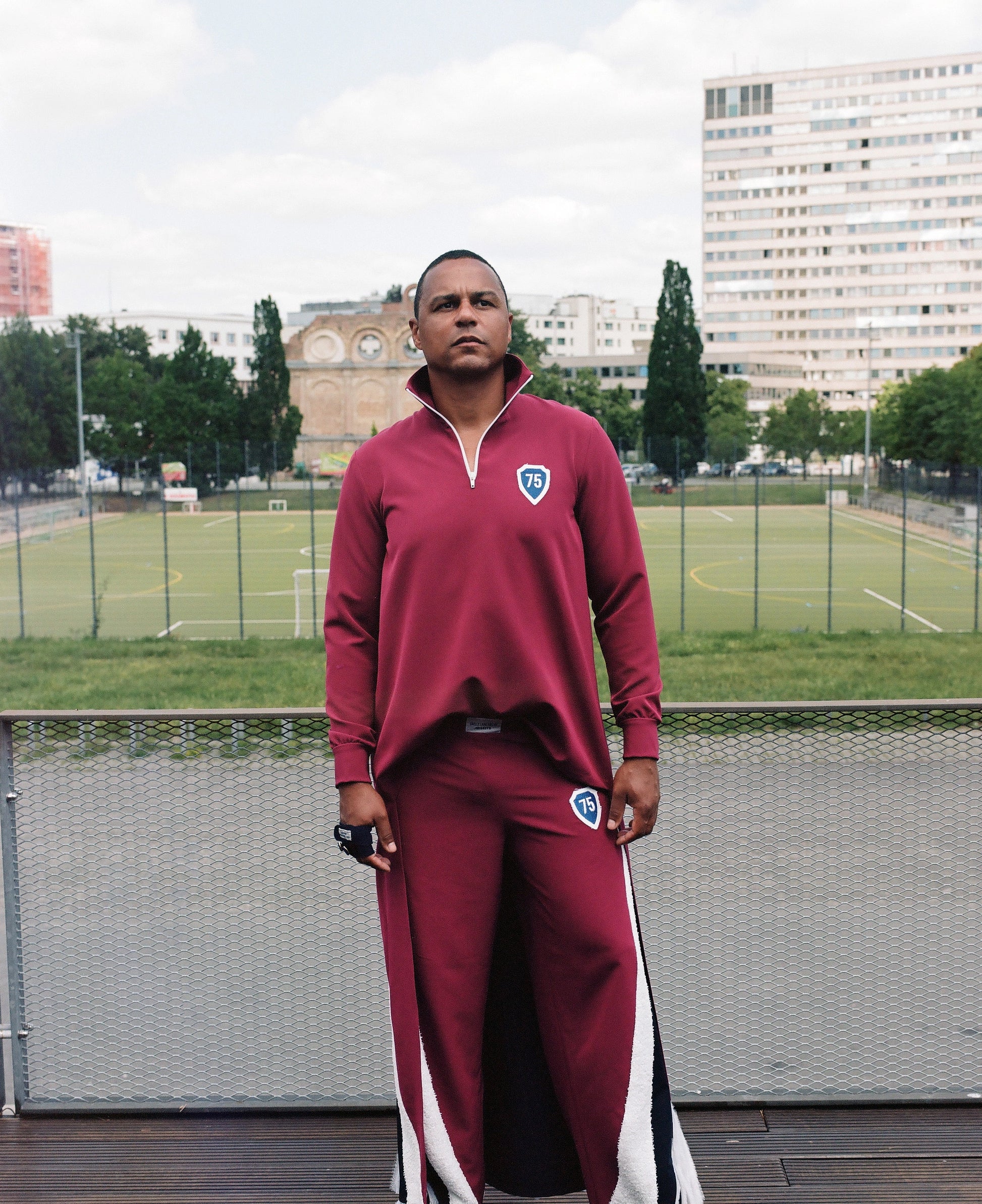 Inspired by the Eiffel Tower, this outfit features multiple references to the iconic structure. Starting with a classic tracksuit, we added a train to transform it into a statement piece.