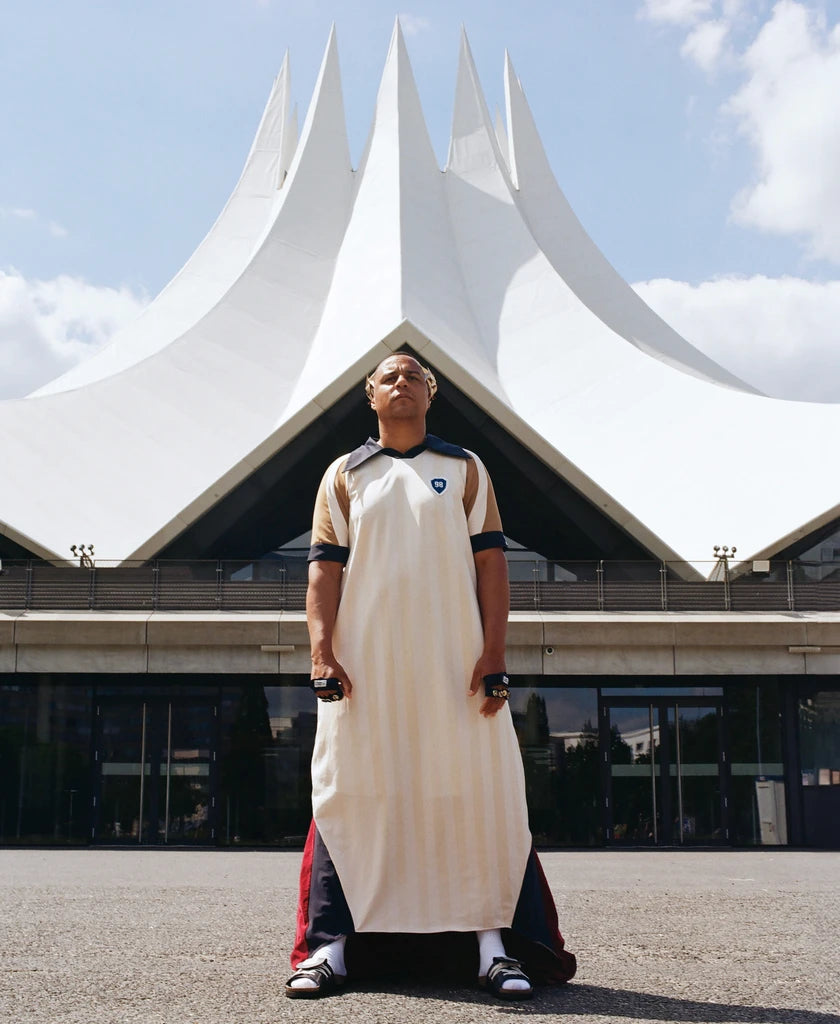 This long tunic embodies the national pride that united the country between 1998 and 2001, when the players of the French national team reigned supreme over the world. It merges royal elegance with football, adding a majestic train worthy of royal coronations.