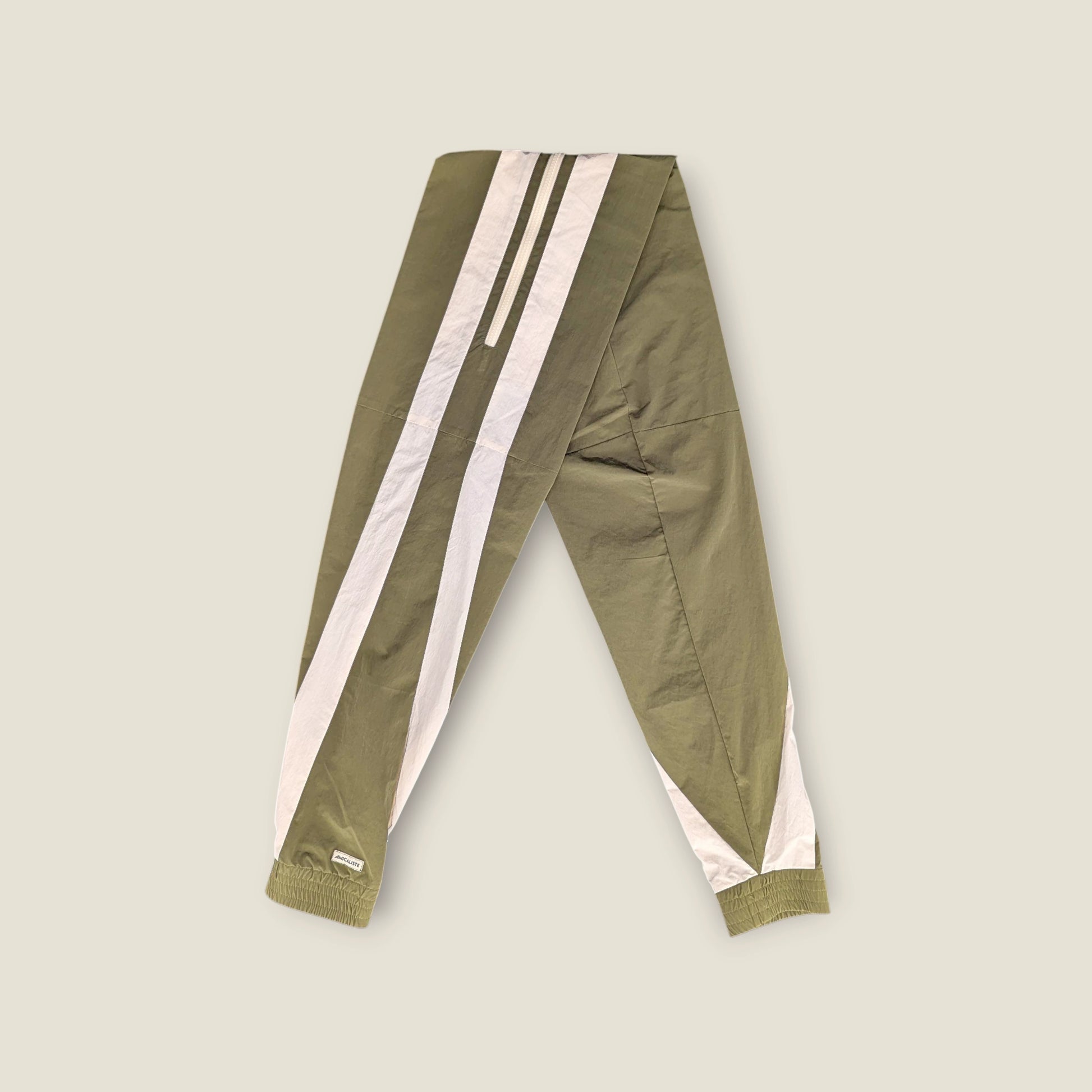 Track jacket sleeve transformed into a functional waist bag featuring a large internal zip pocket. Crafted from Italian technical fabric with an innovative single-sleeve design that knots across your body or around your waist. Bring it to stadiums, festivals, and clubs.