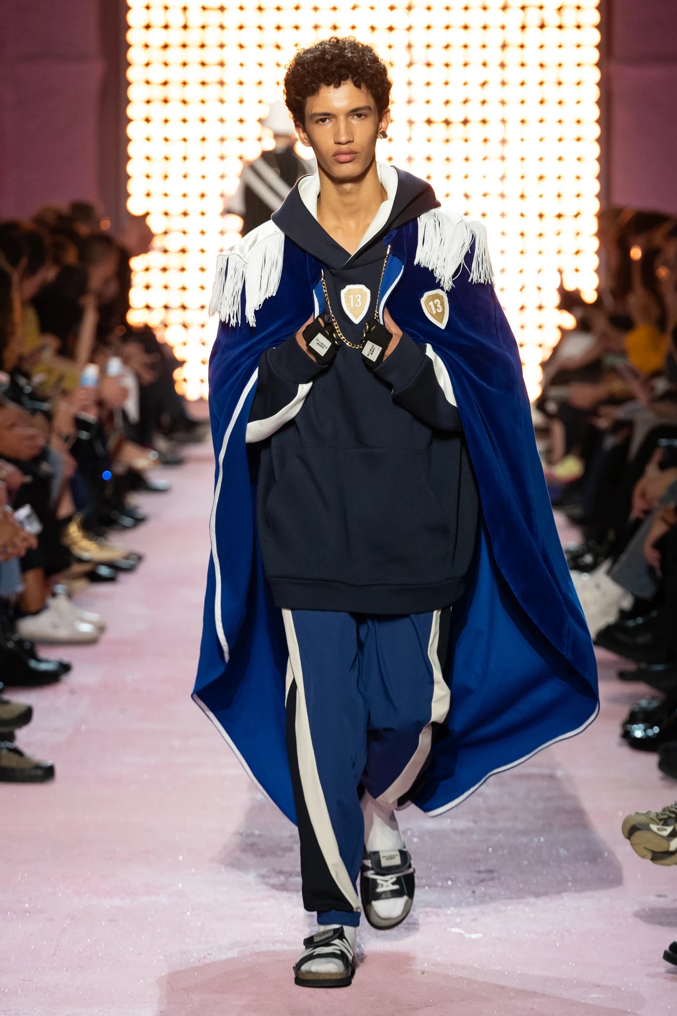 The hoodie and shorts evoke the overwhelming and irrational passion of Marseille's people for their club. Through color and detail, the outfit captures their immense pride and deep attachment to the majestic Bonne Mère, to whom this look pays homage.